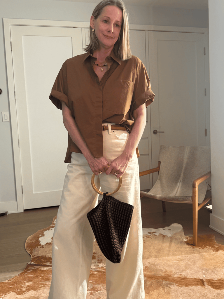 A color of jeans I never thought I’d wear? Yellow. But here I am, and I’m loving mixing them with a brown top. I can also see throwing them on in summer with a white tank top and a brown belt and brown sandals. Or pairing them with a blue and white striped sweater while it’s still chilly out. Here are two awesome options for you: